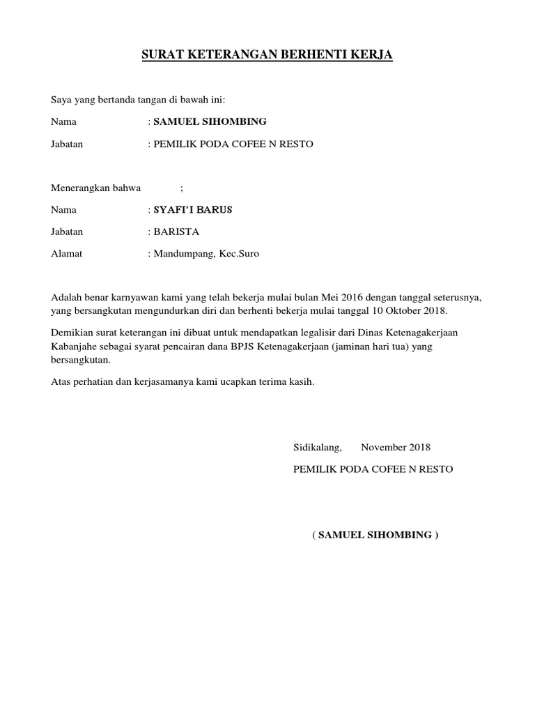 Surat Keterangan Berhenti Kerja Pdf